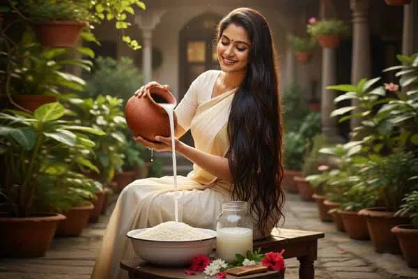 బియ్యం నీళ్ళు అంటే కేవలం వంట చేసుకునేటప్పుడు పారబోసే నీళ్ళని అనుకోవద్దు. ఇది మీ జుట్టుకు ఒక పోషకాల నిధి! జుట్టు రాలడం (Hair Fall), చివర్లు చిట్లడం (Split Ends), జుట్టు పొడిబారడం (Dry Hair) వంటి సమస్యలతో బాధపడుతున్నారా? అయితే ఈ సహజసిద్ధమైన ఔషధం మీకు అద్భుతంగా పనిచేస్తుంది. ముఖ్యంగా మన తెలుగు వారికి ఈ చిట్కా కొత్తేమీ కాదు. అమ్మమ్మల కాలం నుండి జుట్టు ఆరోగ్యం కోసం దీనిని వాడుతున్నారు. ఇందులో ఉండే ముఖ్యమైన అమైనో ఆమ్లాలు (Amino Acids), విటమిన్లు (Vitamins), మరియు ఖనిజాలు (Minerals) మీ కురులను లోపలి నుండి బలంగా, ఆరోగ్యంగా మారుస్తాయి.